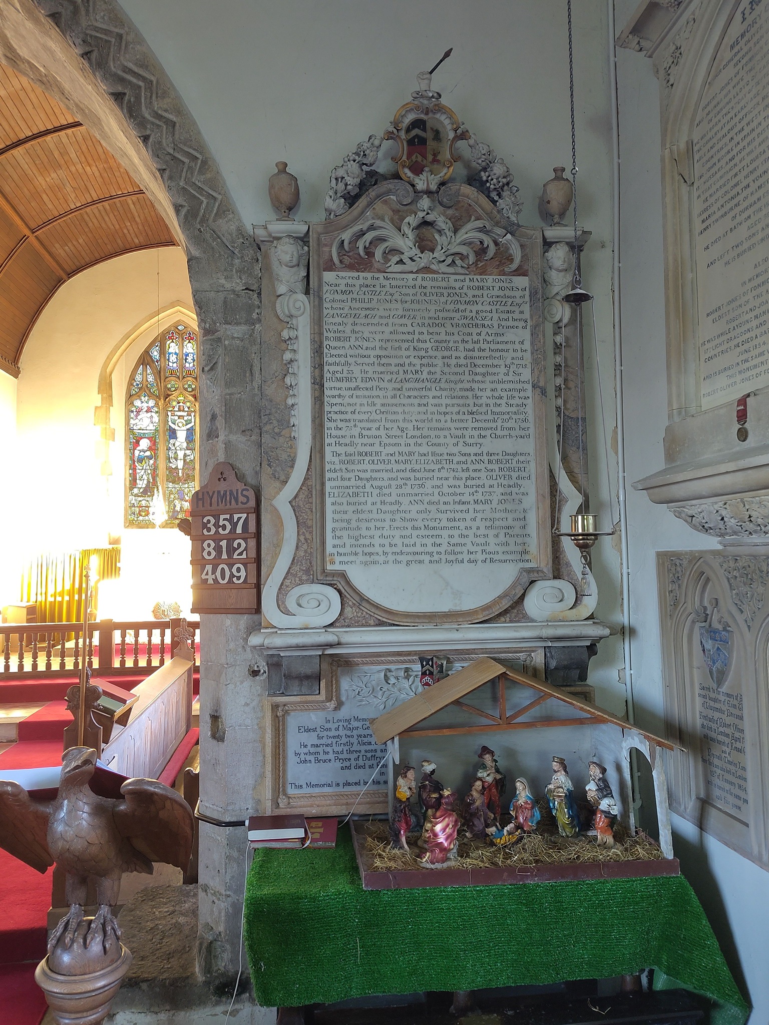 It is perhaps surprising that Joanna herself has no memorial. There are other family memorials in the church and churchyard at Penmon and she is mentioned on the monument to her sons (fig. 4). The church was extensively rebuilt in the nineteenth century and it is possible that a monument has been lost. Alternatively, did the family content themselves with giving her such a magnificent send-off and feel no need for a more permanent memorial?
